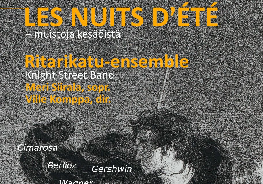 SU 17.6.2012 klo 15 — SUN June 17th at 3 pm Balderin sali (Balder’s Hall) Aleksanterinkatu 12 Ville Kompan sovituksia kamariyhtyeelle. Ritarikatu-ensemble, Meri Siirala, sopraano. Cimarosa, Berlioz, Wagner, Gershwin. Liput 15/10€ ovelta. Ville Komppa’s arrangements for Knight Street Band. Meri Siirala, soprano, Ville Komppa, conductor. Cimarosa, Berlioz, Wagner, Gershwin. Tickets 15/10€ at the door. Nuorten ammattimuusikoiden Ritarikatu-ensemble kokeileeContinue reading “Les nuits d’été — Muistoja kesäöistä su 17.6.2012 Balderissa!”